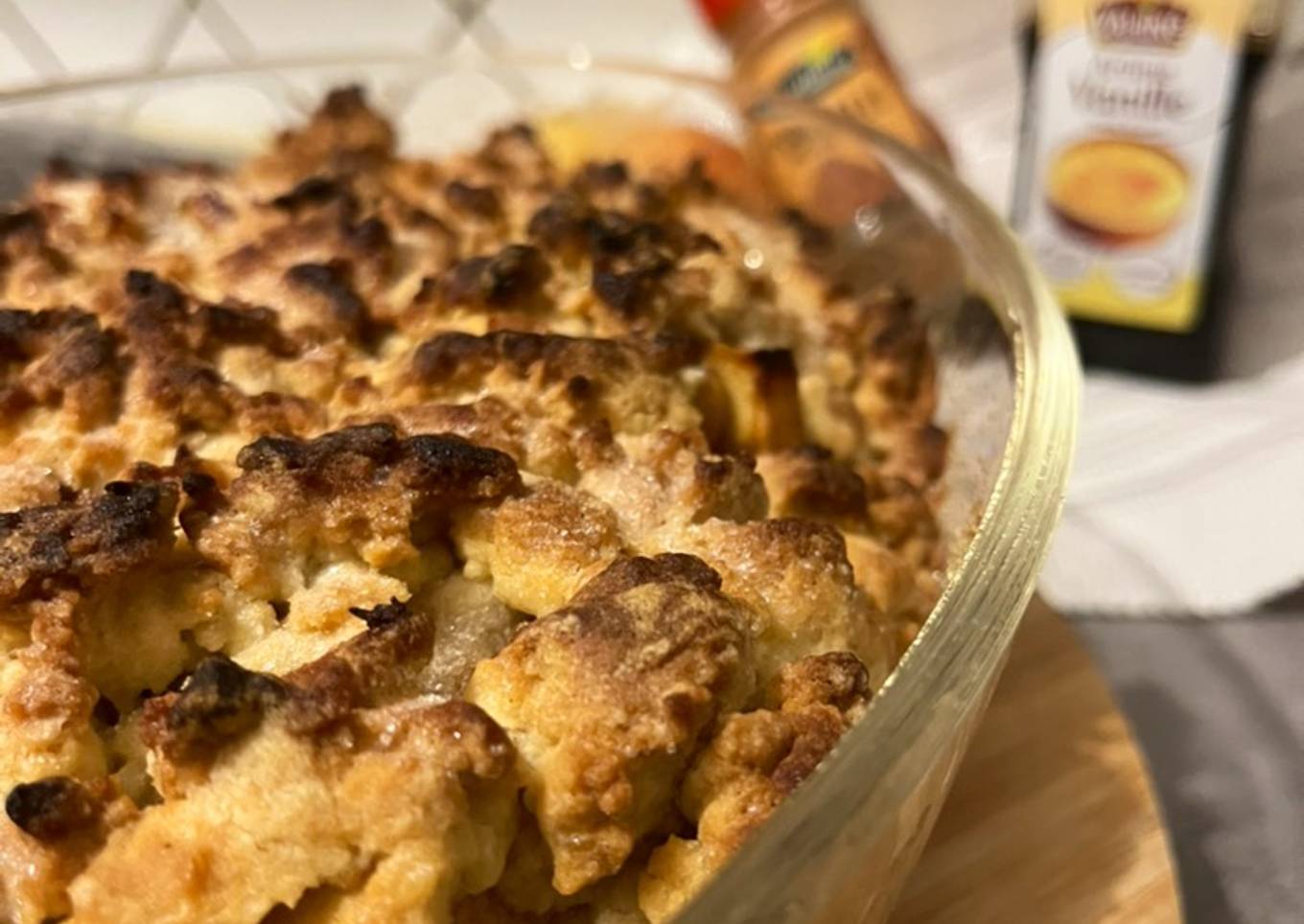 - Quand votre crumble et prêt, récupérer uniquement les pommes cuites et mettez les dans un moule allant au four.