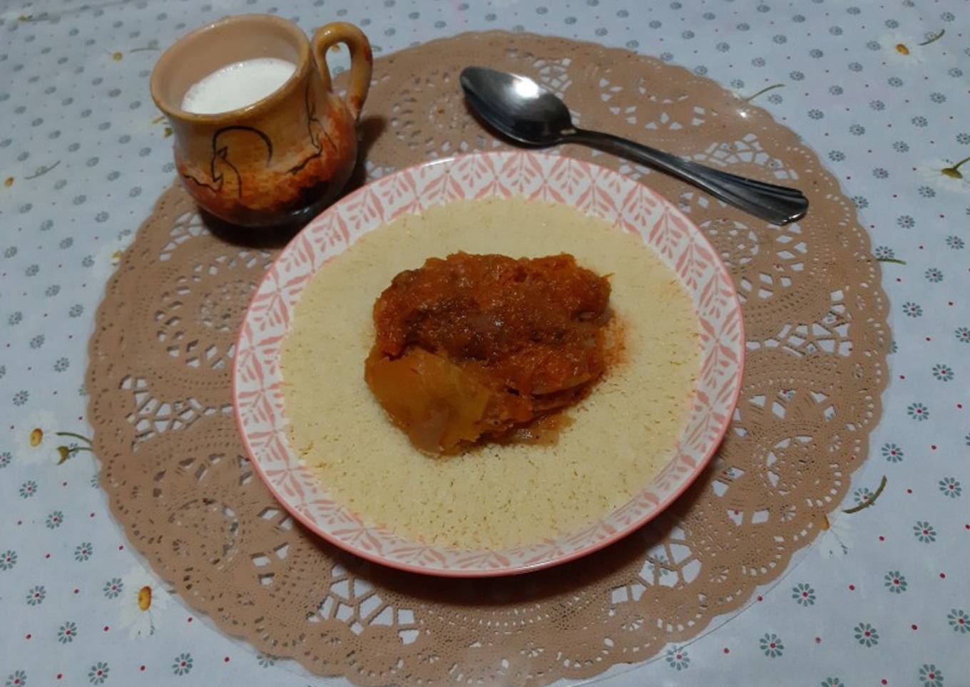 - Servez le couscous avec la sauce a base de citrouille.