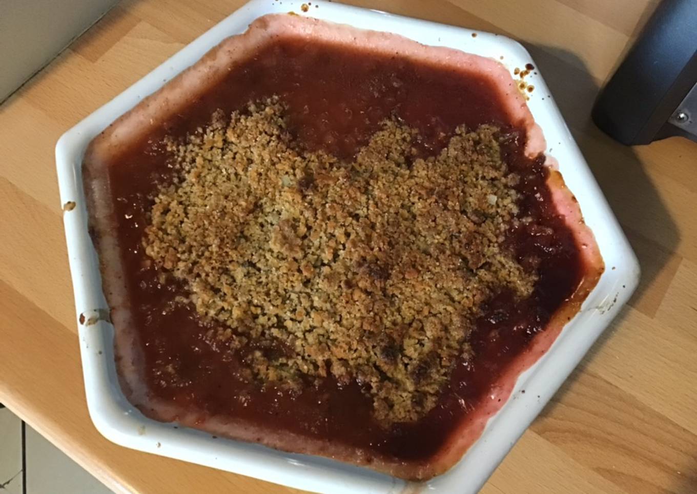 - Ajouter la pâte à crumble bien recouvrir les fruits